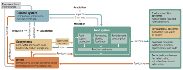 Figure | How climate change, ecosystems, and food system drivers interact to affect food security.