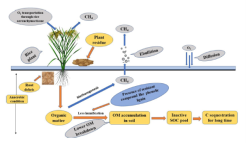Figure | Schematic diagram of CH4 emission and C sequestration in rice soil.